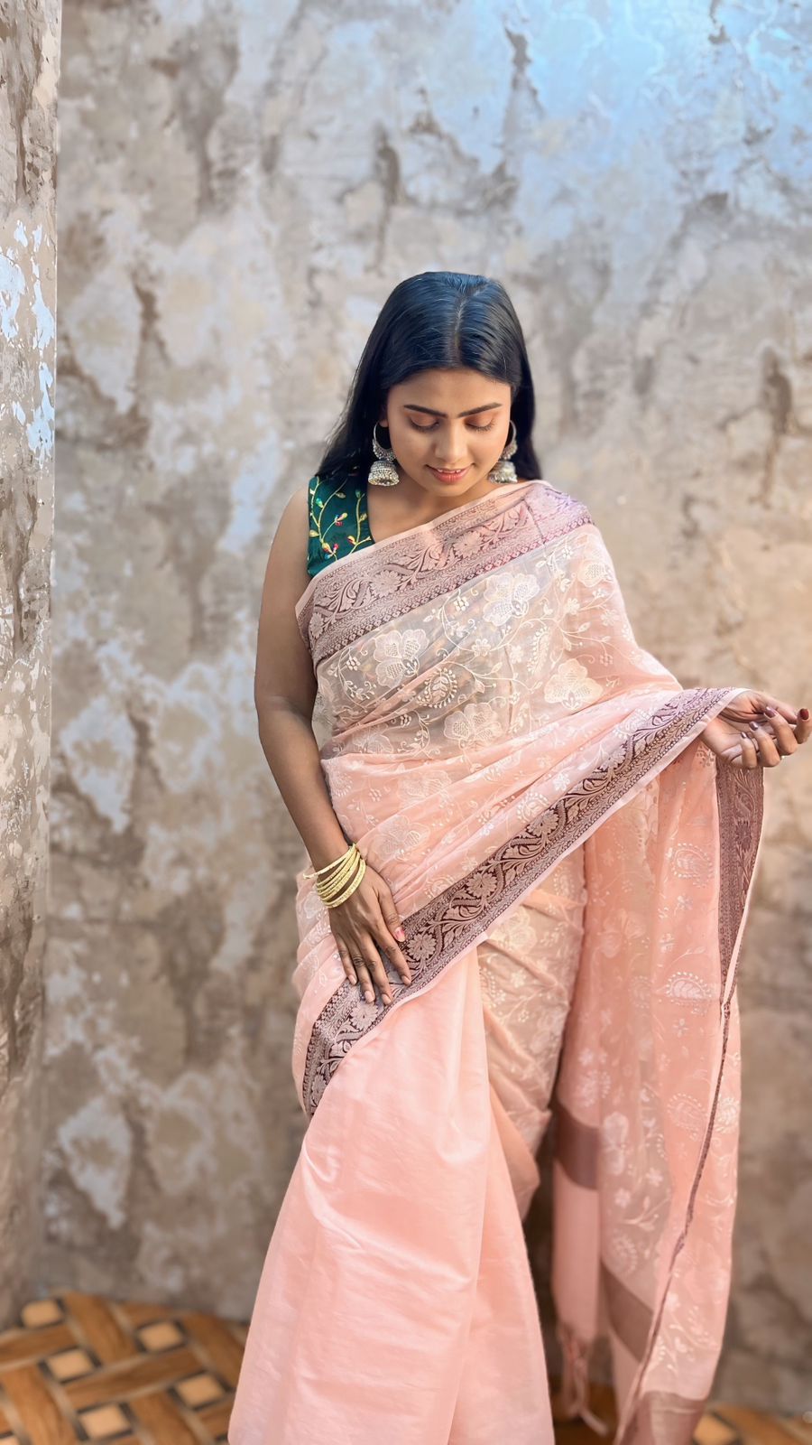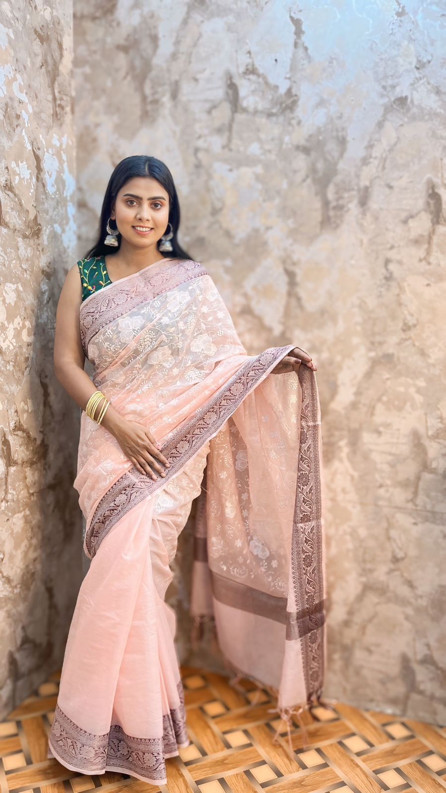 This isBanarasi Mulmul Cotton Silk Saree With Work saree specially for party and wedding ceremony . it looks like a pure saree. it is ver soft and classy wear look.